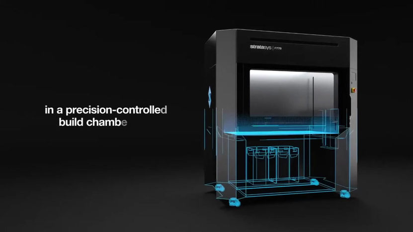 Our Stratasys 770 3D Printer can produce parts up to 100cm wide (with a height and depth of 60cm), providing the capability to build large parts or sizable assortments of smaller parts. The F770 features industrial-grade technology for consistent, reliable performance and accurate results. Available model materials include two industry standard thermoplastics available in three layer thicknesses (slice heights). Soluble support material enables complex designs and hands-free post-processing.